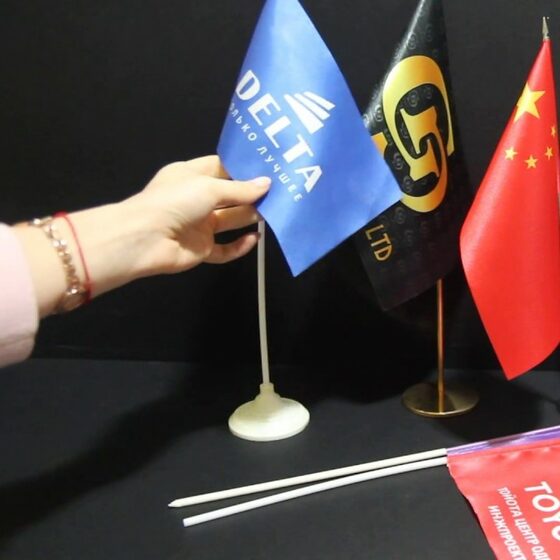 Сборка бумажных флажков на пластиковой палочке в качестве флагштока. Заготовка флажка с бигом или скобами, вдевается в пластиковою трубочку с прорезью так чтобы биговка или скобы фиксировали флажок в полости пластиковой трубочки с прорезью.